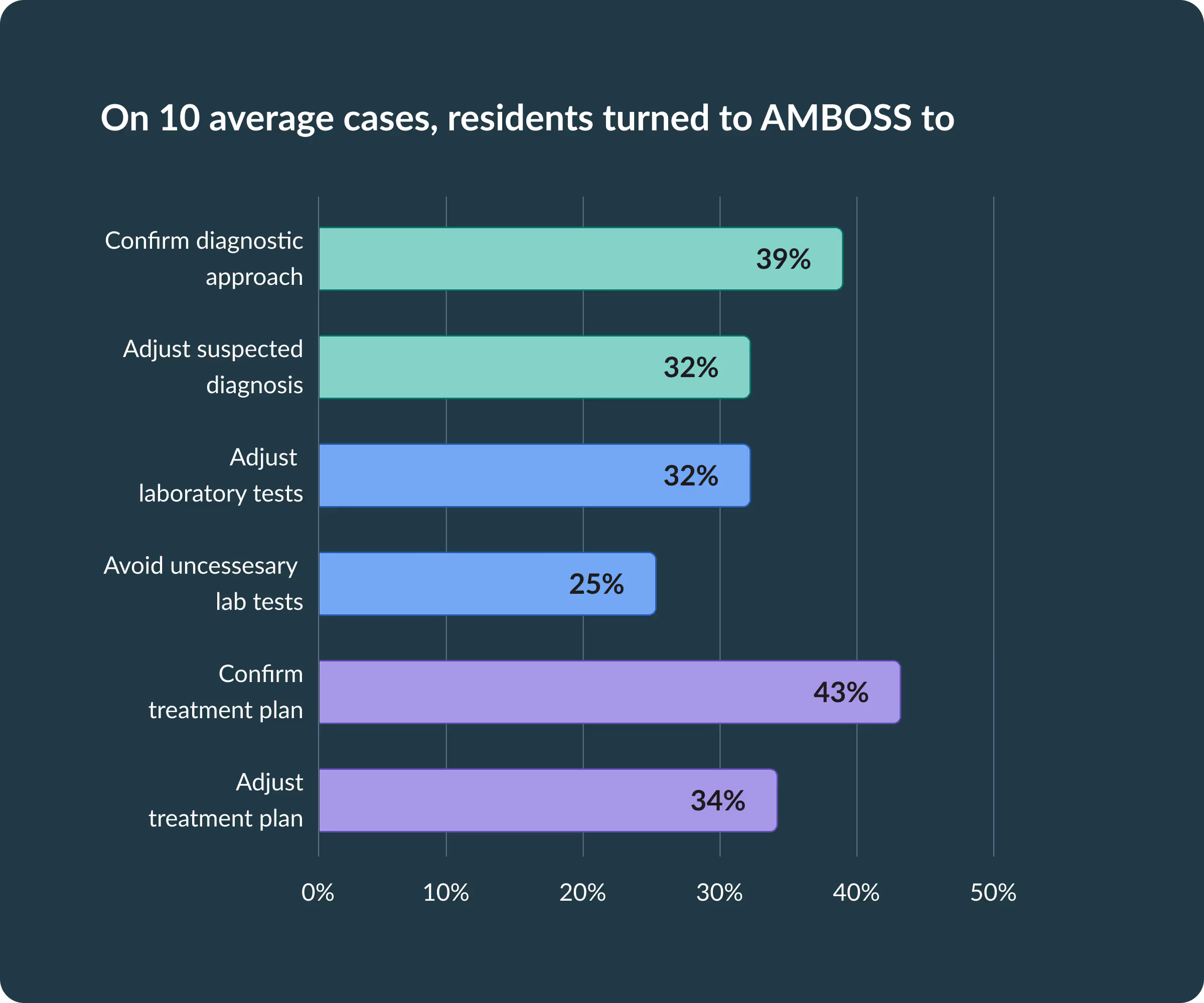 On average, when using AMBOSS, residents find information in 90 seconds. In contrast, they spend 82% more time searching for information when using other resources.